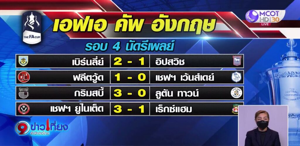 8 ก.พ. – เชฟฟิลด์ ยูไนเต็ด เปิดบ้านชนะ เร็กซ์แฮม 3-1 ผ่านเข้ารอบ 5 ฟุตบอลเอฟเอคัพ อังกฤษ ไปพบ ท็อตแน่ม ฮอตสเปอร์ส