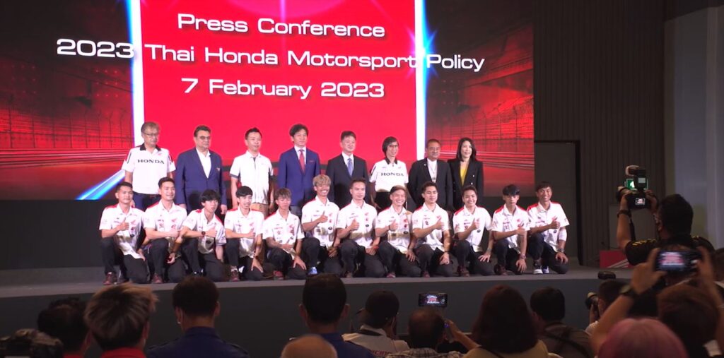 มร.ชิเกโตะ คิมูระ ประธานกรรมการบริหารไทยฮอนด้า จำกัด ประกาศแผนมอเตอร์สปอร์ตปี 2023 โดยยังคงสานต่อนโยบายการยกระดับศักยภาพทีมแข่ง และนักบิดไทยให้ไปสู่เวทีระดับโลกอย่างต่อเนื่อง ภายใต้แนวคิด “Don’t Limit Your Challenges” เพื่อให้นักแข่งได้มีความท้าทายใหม่มากขึ้น และใช้ศักยภาพความสามารถได้อย่างเต็มที่ พร้อมเปิดตัวนักบิดทีมฮอนด้า เรซซิ่ง ไทยแลนด์ สู้ศึกฤดูกาล 2023-2024 นำโดย “เจ้าก้อง”สมเกียรติ จันทรา เจ้าของรางวัลนักกีฬาอาชีพชายดีเด่นจากการกีฬาแห่งประเทศไทย
