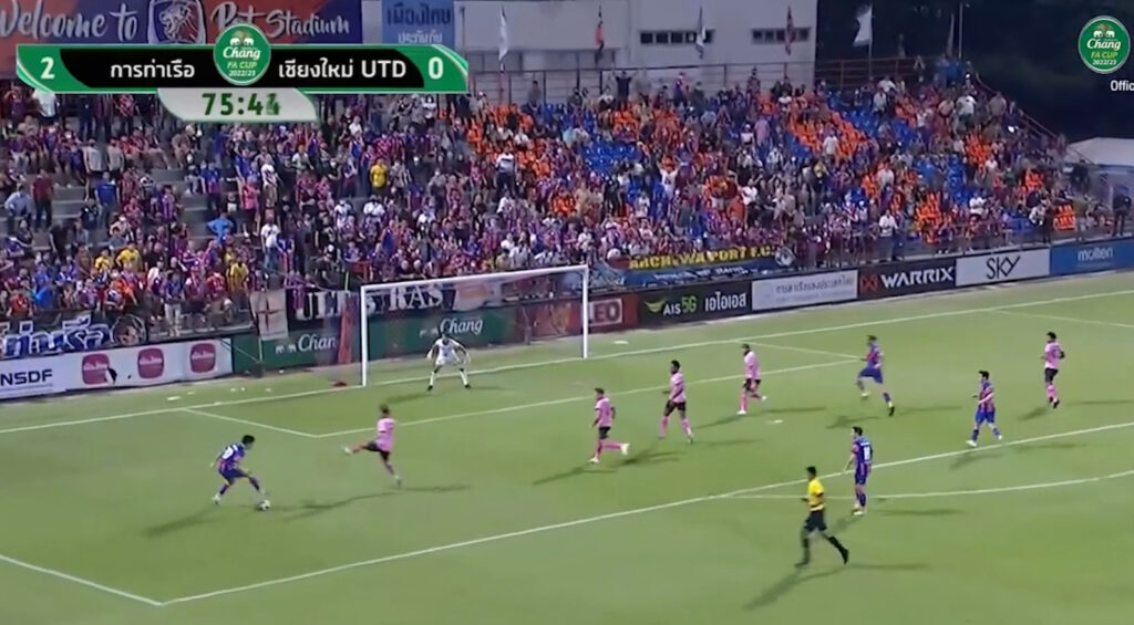อีกคู่ที่แพท สเตเดียม การท่าเรือ เอฟซี เปิดบ้านบ้าน พบเชียงใหม่ ยูไนเต็ด จากไทยลีก 2 เกมนี้ท่าเรือเหนือกว่า ขึ้นนำนาทีที่ 20 จากการยิงไกลสุดสวยของ ศุภนันท์ บุรีรัตน์ ก่อนที่ครึ่งหลัง นาทีที่ 60 เอเลียส ดอเลาะ เติมขึ้นมาโขกประตูที่ 2 นาทีที่ 76 บดินทร์ ผาลา เลี้ยงหลบ 2 ผู้เล่นเชียงใหม่ ก่อนยิงเข้าไปอย่างสวยงาม ให้ท่าเรือนำ 3-0 ก่อนหมดเวลา 2 นาที วรชิต กนิตศรีบำเพ็ญ ยิงประตูปิดท้ายให้การท่าเรือ เปิดบ้านชนะเชียงใหม่ ยูไนเต็ด 4-0 ผ่านเข้ารอบ 8 ทีมสุดท้ายได้เช่นกัน