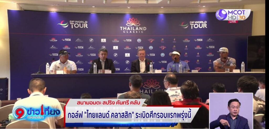 นายนิธิ สีแพร รองผู้ว่าการ การท่องเที่ยวแห่งประเทศไทย ด้านดิจิทัล วิจัย และพัฒนา พร้อมด้วยนักกอล์ฟชั้นนำ ทั้ง “โปรอาร์ม” กิรเดช อภิบาลรัตน์, “โปรช้าง” ธงชัย ใจดี และ ราฟา คาเบร์รา เบลโญ โปรชาวสเปน ร่วมกันยืนยันความพร้อม ก่อนร่วมแข่งขัน กอล์ฟดีพีเวิลด์ทัวร์ รายการ “ไทยแลนด์ คลาสสิก 2023” ที่สนามอมตะ สปริง คันทรี คลับ จ.ชลบุรี ระหว่างวันที่ 16-19 กุมภาพันธ์ ชิงเงินรางวัลรวม 2 ล้านดอลลาร์สหรัฐ หรือราว 65,800,000 บาท ซึ่งประเทศไทยได้เป็น 1 ใน 26 ประเทศที่ได้จัดศึกดีพี เวิลด์ทัวร์