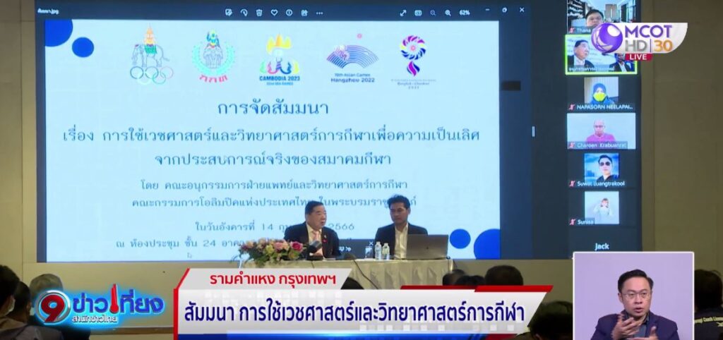 คณะกรรมการโอลิมปิกแห่งประเทศไทย จัดการสัมมนา เรื่องการใช้เวชศาสตร์และวิทยาศาสตร์การกีฬาเพื่อความเป็นเลิศจากประสบการณ์จริงของสมาคมกีฬา ในวันที่ 14 กุมภาพันธ์ ณ ห้องประชุม ชั้น 24 อาคารเฉลิมพระเกียรติฯ การกีฬาแห่งประเทศไทย โดยมี นพ.วารินทร์ ตัณฑ์ศุภศิริ เป็นประธานในพิธี เปิดกิจกรรม และมีวิทยากรทรงคุณวุฒิหลายท่านร่วมกันให้ความรู้เกี่ยวกับเวชศาสตร์และวิทยาศาสตร์การกีฬา ให้กับบรรดาสมาคมกีฬาในประเทศไทย. – สำนักข่าวไทย