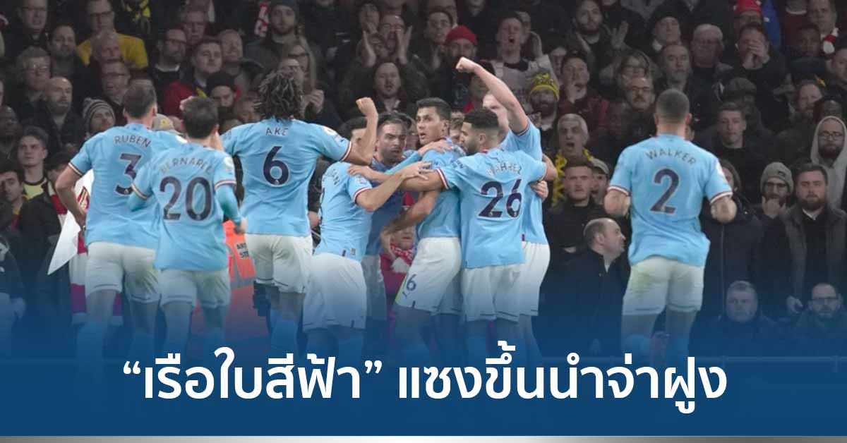 ผลฟุตบอลพรีเมียร์ลีก อังกฤษ นัดตกค้างเมื่อคืนที่ผ่านมา “ปืนใหญ่” อาร์เซนอล เปิดเอมิเรตส์ สเตเดียม แพ้ “เรือใบสีฟ้า” แมนเชสเตอร์ ซิตี้ 1-3 โดยแมนฯ ซิตี้ ขึ้นนำก่อนในนาทีที่ 24 จากเควิน เดอบรอยน์ ก่อนที่บูคาโย ซากา จะมายิงลูกจุดโทษให้อาร์เซนอล ตามตีเสมอ 1-1 ในนาทีที่ 42 แต่ครึ่งหลัง แมนฯ ซิตี้ ยิง 2 ประตูรวด จาก แจ็ก กรีลิซ นาทีที่ 72 และ เออร์ลิง ฮาแลนด์ นาทีที่ 82 ช่วยให้ทีม “เรือใบสีฟ้า” บุกมาเก็บ 3 คะแนน แซงหน้าอาร์เซนอล ขึ้นนำจ่าฝูง โดยมี 51 คะแนนเท่ากัน แต่แมนฯ ซิตี้ มีผลต่างประตูได้เสียที่ดีกว่า และแข่งมากกว่า 1 นัด