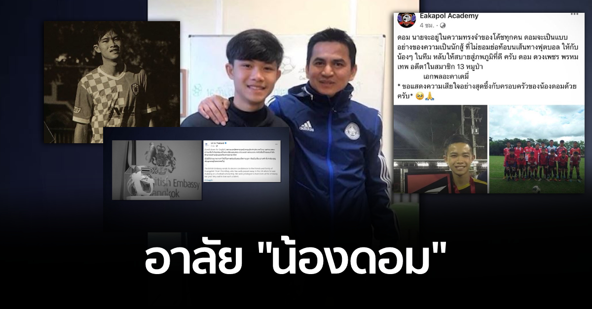 สำหรับ “น้องดอม” ดวงเพชร พรหมเทพ กัปตันทีมฟุตบอล “หมูป่า อะคาเดมี่” ที่ได้ทุนไปศึกษาต่อที่บรู๊ค เฮาส์ คอลเลจ ฟุตบอล อะคาเดมี่ ประเทศอังกฤษ จากความร่วมมือของ sport education กับมูลนิธิซิโก้ ของ “ซิโก้” เกียรติศักดิ์ เสนาเมือง อดีตเฮดโค้ชทีมชาติไทย ถือเป็นที่รักของทุกคนที่ได้พบเห็นและได้สัมผัส นับตั้งแต่เป็นที่รู้จักจากเหตุการณ์ทีมฟุตบอลหมูป่า อะคาเดมี่ ติดถ้ำหลวงขุนน้ำนางนอน จ.เชียงราย เมื่อปี 2561 จนเป็นข่าวโด่งดังไปทั่วโลก และต่างติดตามให้กำลังใจ 13 หมูป่า ให้โลดแล่นในวงการฟุตบอลตามที่ทุกคนฝันเอาไว้ แต่วันนี้กลับต้องมาสูญเสียน้องดอม กำลังหลักของทีมอย่างไม่มีวันกลับ ซึ่งสิ่งที่ทุกคนต่างตั้งตารอคอยคือผลชันสูตรการเสียชีวิตของน้องดอมว่าเกิดขึ้นจากสาเหตุใด รวมถึงการนำร่างอันไร้วิญญาณของน้องดอมกลับมาสู่บ้านเกิด เพื่อทำพิธีทางศาสนาต่อไป โดยทีมข่าวกีฬาสำนักข่าวไทย ขอแสดงความเสียใจกับการจากไปของน้องดอม-ดวงเพชร พรหมเทพ .-สำนักข่าวไทย