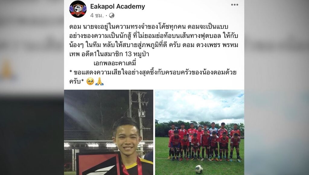 ความสูญเสียในครั้งนี้ นายเอกพล จันทะวงษ์ หรือโค้ชเอก ได้โพสต์ในเฟซบุ๊ก “Eakapol Academy” ระบุว่า “ดอม จะอยู่ในความทรงจำของโค้ชทุกคน ดอมจะเป็นแบบอย่างของความเป็นนักสู้ ที่ไม่ยอมย่อท้อบนเส้นทางฟุตบอล ให้กับน้องๆ ในทีม หลับให้สบายสู่ภพภูมิที่ดี เอกพลอะคาเดมี่ ขอแสดงความเสียใจอย่างสุดซึ้งกับครอบครัวของน้องดอมด้วยครับ”