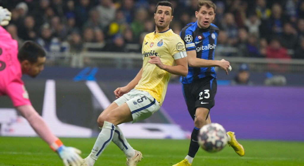 อีกคู่ อินเตอร์ มิลาน รองจ่าฝูงเซเรียอา อิตาลี เปิด จูสเซ็ปเป้ เมอัซซ่า พบ เอฟซี ปอร์โต้ รองจ่าฝูงจากลีก ปรีไมราลีกา โปรตุเกส ครึ่งแรกเสมอ 0-0 ครึ่งหลังนาทีที่ 78 ทีมเยือนเหลือผู้เล่น 10 คนจาก โอตาวิโอ ไปทำฟาวด์ ฮาคาน คัลฮาโนกลู ถูกใบเหลืองที่ 2 เป็นใบแดงไล่ออกจากสนาม ก่อนที่ 8 นาทีต่อมาเจ้าถิ่นจะได้ประตูชัยจาก โรเมลู ลูกากู ช่วยให้ อินเตอร์ เอาชนะ 1-0 กุมความได้เปรียบในเลกแรกก่อนกลับไปพบกันที่ โปรตุเกสในคืนวันที่ 14 มีนาคม