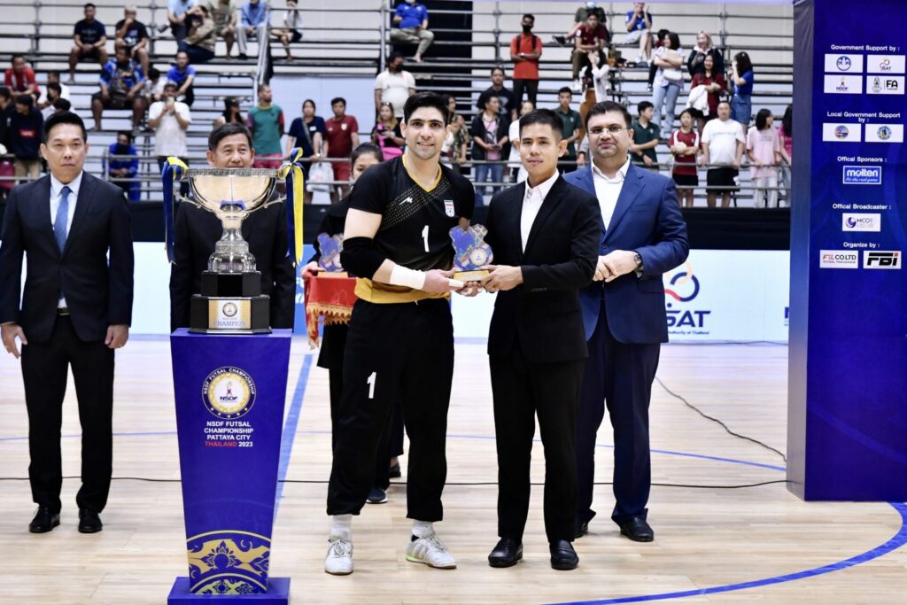 ปิดฉากแล้วสำหรับการแข่งขัน NSDF ฟุตซอล แชมเปียนชิพ 2023 ที่สนามศูนย์กีฬาแห่งชาติภาคตะวันออก เมืองพัทยา จังหวัดชลบุรี ที่จัดแข่งขันต่อเนื่อง 1 สัปดาห์เต็มกับ 6 ทีม คือ ไทย, ญี่ปุ่น, อิหร่าน, อียิปต์, โมซัมบิก และซาอุดีอาระเบีย ปรากฏว่า แชมป์ตกเป็นของ อิหร่าน เบอร์ 1 ของเอเชีย และอันดับ 7 ของโลก ที่รอบชิงชนะเลิศ แซงชนะ ญี่ปุ่น อันดับ 12 ของโลก เจ้าของแชมป์เอเชี่ยนคัพ 4-1 อิหร่านคว้าแชมป์ไปครอง ส่วนญี่ปุ่นได้รองแชมป์