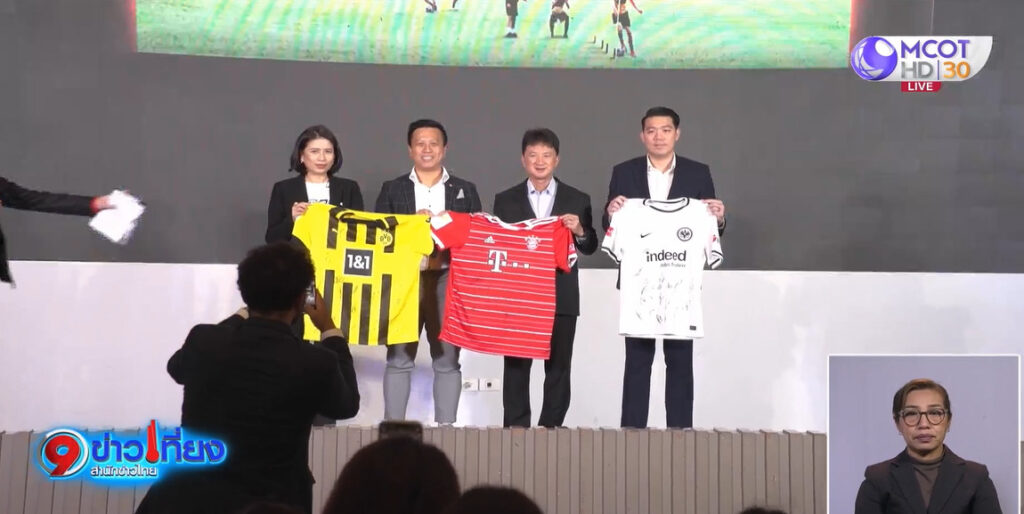 นายทนุเกียรติ จันทร์ชุม รองผู้ว่าการการกีฬาแห่งประเทศไทย ฝ่ายกีฬาอาชีพและกีฬามวย ลงนามบันทึกข้อตกลงความร่วมมือ (MOU) โครงการ “บุนเดสลีกา ดรีม” หรือ “เตะ ล่า ฝัน” เพื่อผลักดันและพัฒนานักเตะเยาวชนไทยที่มีความสามารถไปสู่การเป็นนักฟุตบอลอาชีพ โดยมี มร.เควิน ซิม หัวหน้าฝ่ายเอเชียแปซิฟิก ของบุนเดสลีกา อินเตอร์เนชั่นแนล ร่วมลงนาม