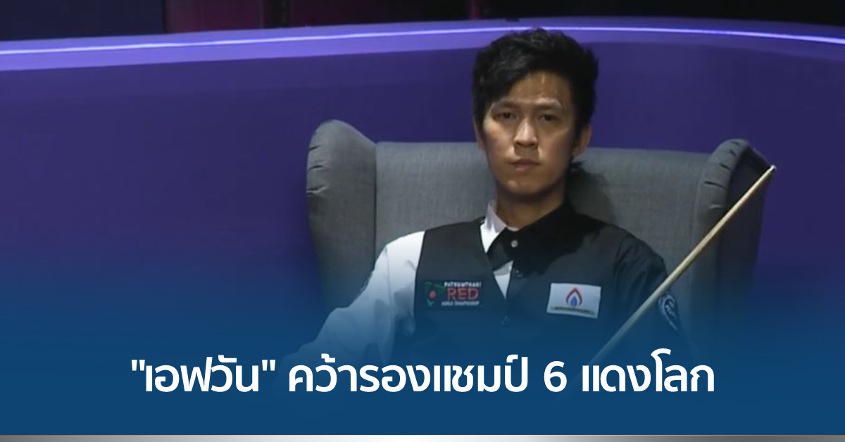 ม.ธรรมศาสตร์ รังสิต 11 มี.ค. – “เอฟวัน” เทพไชยา อุ่นหนู นักสอยคิวชาวไทย คว้ารองแชมป์สนุกเกอร์ 6 แดง ชิงแชมป์โลก หลังแพ้ให้กับ ดิง จุน ฮุย จากจีน 6-8 เฟรม ในรอบชิงชนะเลิศ