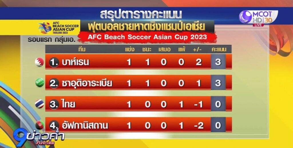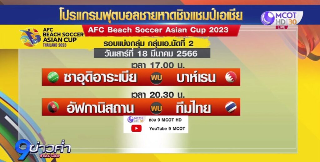 ชลบุรี 17 มี.ค. – ติดตามความพร้อมก่อนเกมฟุตบอลชายหาดชิงแชมป์เอเชีย ทีมชาติไทย พบ อัฟกานิสถาน ค่ำวันพรุ่งนี้ (18 มี.ค.) ช่อง 9 MCOT HD หมายเลข 30 ถ่ายทอดสด