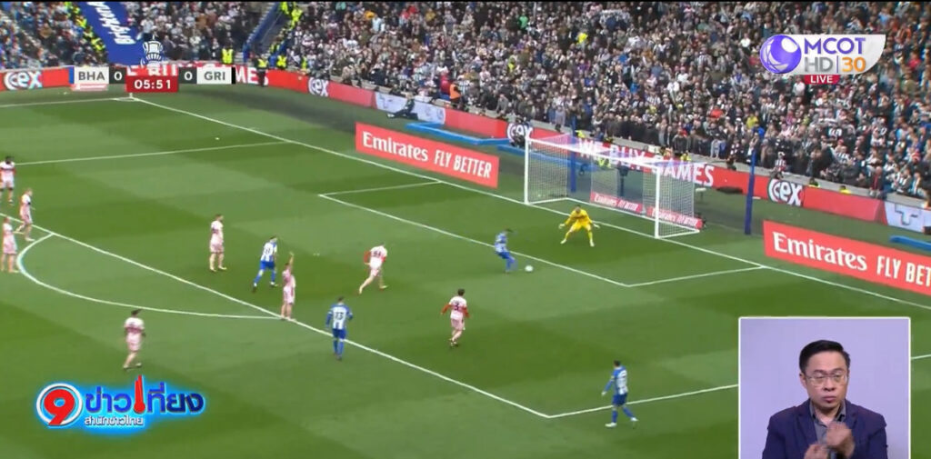 อีกคู่ที่ อเมริกันเอ็กซ์เพรส คอมมิวนิตี้ สเตเดี้ยม ไบร์ทตัน เปิดบ้าน พบ กริมส์บี ทาวน์ จากลีกทู เกมนี้ เจ้าถิ่นได้ประตูขึ้นนำตั้งแต่นาทีที่ 6 จากเดนิซ อันดาฟ ที่ตามเข้าไปซ้ำลูกยิงของ มอยเซ่ ไคเซโด้ ครึ่งหลังนาทีที่ 51 อีวาน เฟอร์กูสัน ศูนย์หน้าวัย 18 ปี ได้บอลในเขตโทษ ก่อนยิงประตูให้เจ้าถิ่นนำ 2-0 นาทีที่ 70 อีวาน เฟอร์กูสัน กระชากเข้ากรอบเขตโทษ ก่อนซัดด้วยซ้ายเป็นประตูที่ 2 ในนัดนี้ทิ้งห่าง 3-0 ช่วงท้ายเกมนาทีที่ 82 โซลลี่ มาร์ช พุ่งโหม่งประตูที่ 4 ให้เจ้าถิ่นนำห่าง 4-0 นาทีที่ 90 คาโอรุ มิโตมะ ซัดด้วยขวาบอลไปแฉลบกองหลัง กริมส์บี ไหลเข้าประตู จบเกมไบร์ทตัน เอาชนะไปได้ 5-0