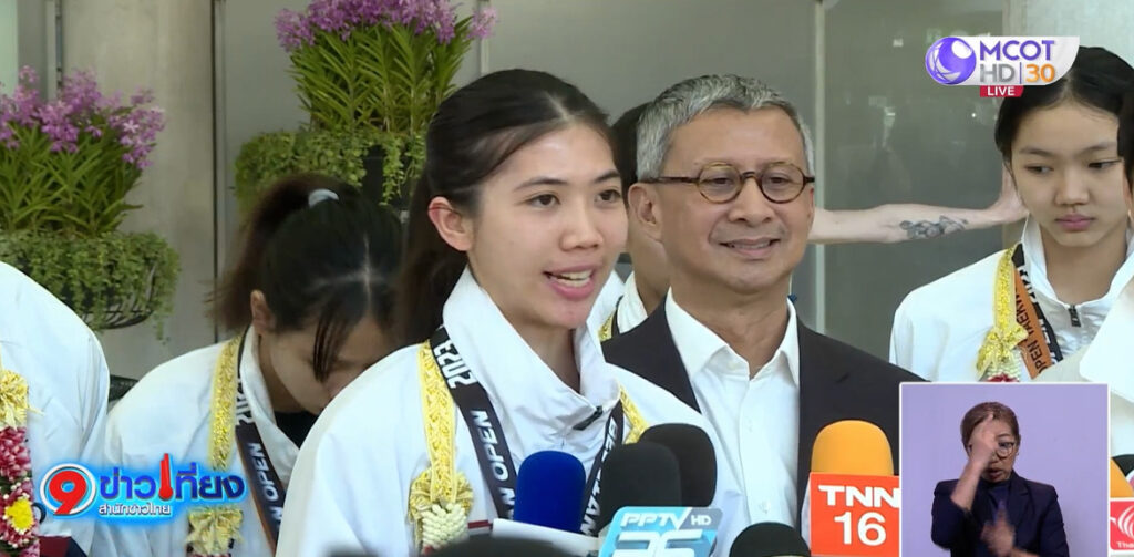 นายพิมล ศรีวิกรม์ นายกสมาคมกีฬาเทควันโดแห่งประเทศไทย ร่วมต้อนรับคณะนักกีฬาเทควันโดทีมชาติไทย ที่ท่าอากาศยานนานาชาติสุวรรณภูมิ ซึ่งกลับมาจากการแข่งขันรายการ “ดัตช์ โอเพ่น เทควันโด แชมเปียนชิพ” ซึ่งทีมจอมเตะไทย คว้ามาได้ 2 เหรียญทอง กับ 2 เหรียญเงิน ขณะที่ รายการ “จี2 เบลเจียน โอเพ่น เทควันโด” คว้ามาได้ 4 เหรียญทอง กับ 1 เหรียญทองแดง ทั้ง 2 รายการนี้ “ขนมจีบ” ณัฐกมล วาสนา รุ่น 46 กก.หญิง กับ “กีต้าร์” กมลชนก สีเคน รุ่น 49 กก.หญิง แจ้งเกิดได้สำเร็จ หลังคว้าเหรียญทองในประเภทเยาวชนทั้ง 2 รายการ ขณะที่ “น้องเทนนิส” พาณิภัค วงศ์พัฒนกิจ ได้เหรียญทองแดง ในประเภทประชาชน รุ่น 49 กก.หญิง รายการ “จี2 เบลเจียน โอเพ่น เทควันโด”