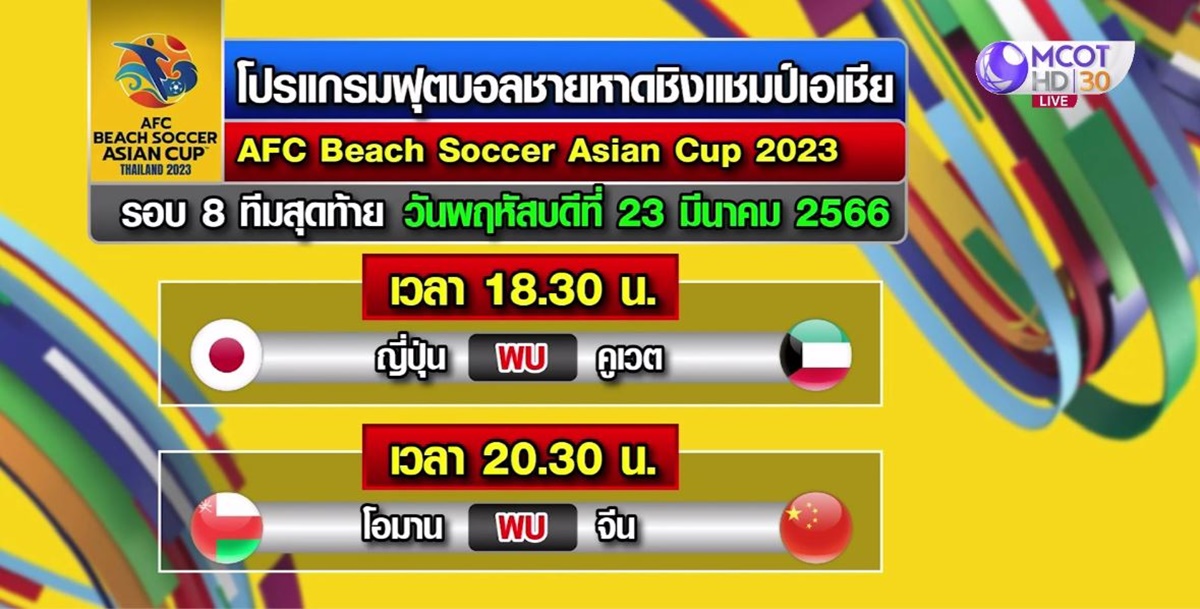 สำหรับโปรแกรมวันพรุ่งนี้ (23 มี.ค.66) จะมีการแข่งขันรอบ 8 ทีมสุดท้าย อีก 2 คู่ เวลา 18.30 น. ญี่ปุ่น พบ คูเวต และเวลา 20.30 น. จีน พบ โอมาน. – สำนักข่าวไทย