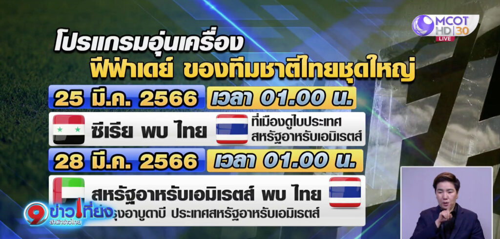 - นัดที่สอง คืนวันที่ 28 มีนาคม 2566 เวลา 01.00 น. พบ สหรัฐอาหรับเอมิเรสต์ อันดับ 70 ของโลก.-สำนักข่าวไทย