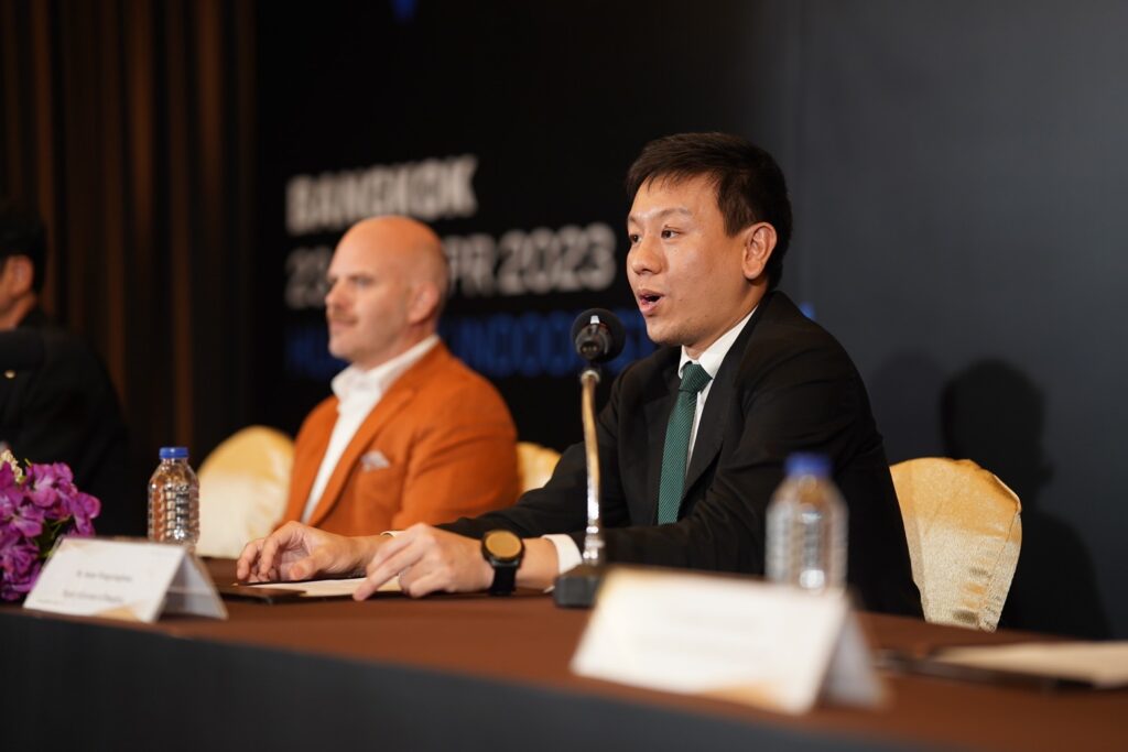 นายศานนท์ หวังสร้างบุญ รองผู้ว่าราชการกรุงเทพมหานคร พร้อมด้วย มร.สตีเฟ่น ดั๊กกิตต์ ผู้จัดการแข่งขัน เวิลด์ เทเบิลเทนนิส หรือ ดับเบิลยูทีที, นายณัฐวุฒิ เรืองเวส นายกสมาคมกีฬาเทเบิลเทนนิสแห่งประเทศไทย และ “หญิง” สุธาสินี เสวตรบุตร นักเทเบิลเทนนิสทีมชาติไทย ร่วมแถลงข่าวการจัดแข่งขันเทเบิลเทนนิสเก็บคะแนนสะสมโลก “ดับเบิลยูทีที สตาร์ คอนเทนเดอร์ แบงค็อก 2023” ระหว่างวันที่ 23-29 เม.ย.66 ที่อินดอร์ สเตเดี้ยม หัวหมาก กรุงเทพฯ โดยงานแถลงข่าวจัดขึ้นที่โรงแรมแกรนโฟวิงส์ ศรีนครินทร์ เมื่อวันที่ 23 มี.ค.ผ่านมา
