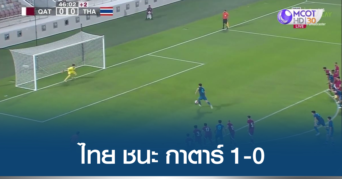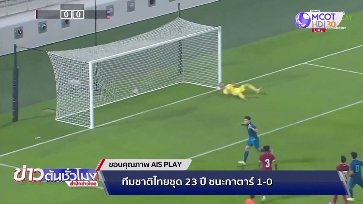 ครึ่งแรก ไทยได้ประตูขึ้นนำในช่วงทดเวลาบาดเจ็บ จากจุดโทษ เมื่อ ธีรศักดิ์ เผยพิมาย โดนทำฟาวล์ ก่อนที่ โจนาธาร เข็มดี จะสังหารเข้าไปให้ทีมช้างศึก นำก่อน 1-0 ซึ่งประตูนี้เป็นประตูชัยให้ทีมชาติไทย ชุด 23 ปี ชนะ กาตาร์ 1-0 เตะ 2 นัด มี 4 คะแนน ได้สิทธิไปเล่นรอบจัดอันดับ ชิงอันดับที่ 3 กับ คูเวต ในวันที่ 28 มีนาคม 2566. – สำนักข่าวไทย