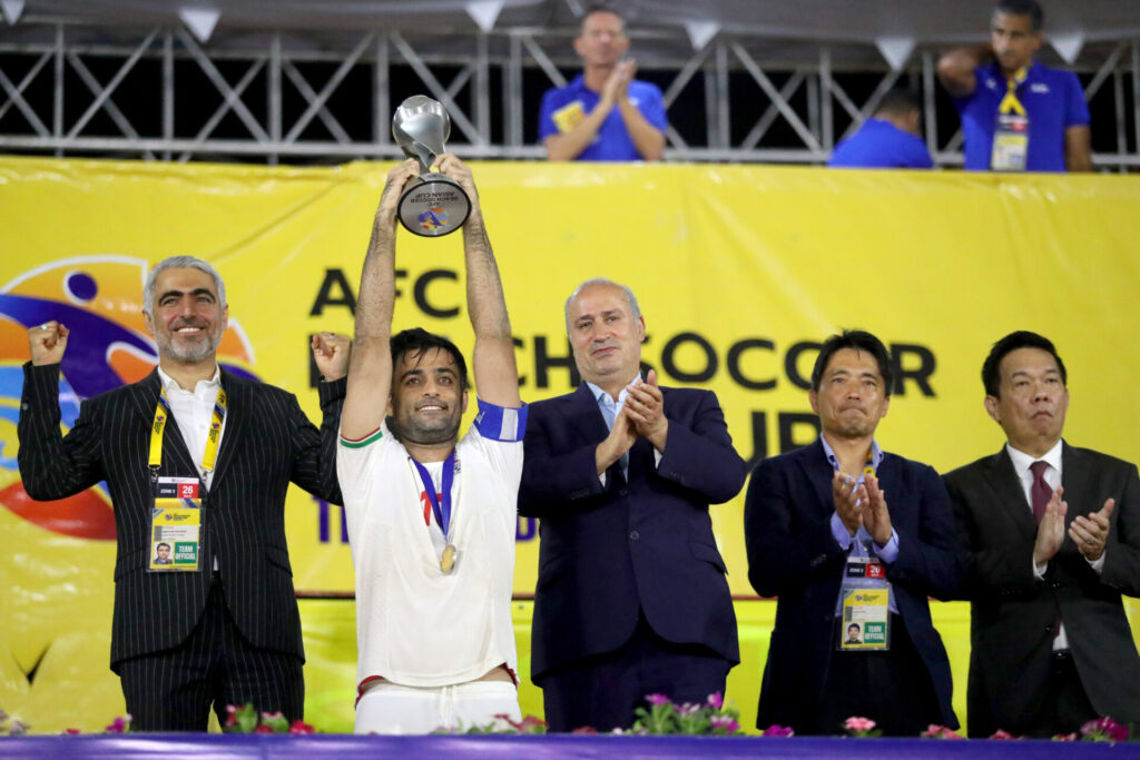 ชลบุรี 27 มี.ค.-อิหร่าน คว้าแชมป์ฟุตบอลชายหาดชิงแชมป์เอเชีย สมัย 3 ถล่มญี่ปุ่น 6-0 ส่วนนักเตะยอดเยี่ยม เป็นของ มอสแลม มาซิก้า กัปตันอิหร่าน ด้าน ดาวซัลโว ทาคุยะ อคากูมะ ดาวยิงญี่ปุ่น ทำ 11 ประตู