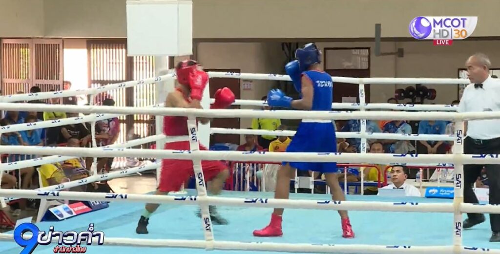 มวยสากลสมัครเล่น วันสุดท้าย ชิง 17 เหรียญทอง ที่โรงเรียนกีฬาจังหวัดนครสวรรค์ รุ่นไลท์เวท น้ำหนัก 56-60 กิโลกรัมชาย รอบชิงชนะเลิศ พิสิษฐ์ เป้าจันทึก นักชกเยาวชนทีมชาติไทย จากนครราชสีมา มุมแดง อาศัยจังหวะดักต่อยเข้าใบหน้าวิทยา สุขภาค จากระนอง ร่วงลงไปนอนกองกับพื้น กรรมการยุติการชก ชูมือให้พิสิษฐ์เอาชนะทีเคโอไปในยกแรกเท่านั้น คว้าเหรียญทองไปครอง.-สำนักข่าวไทย