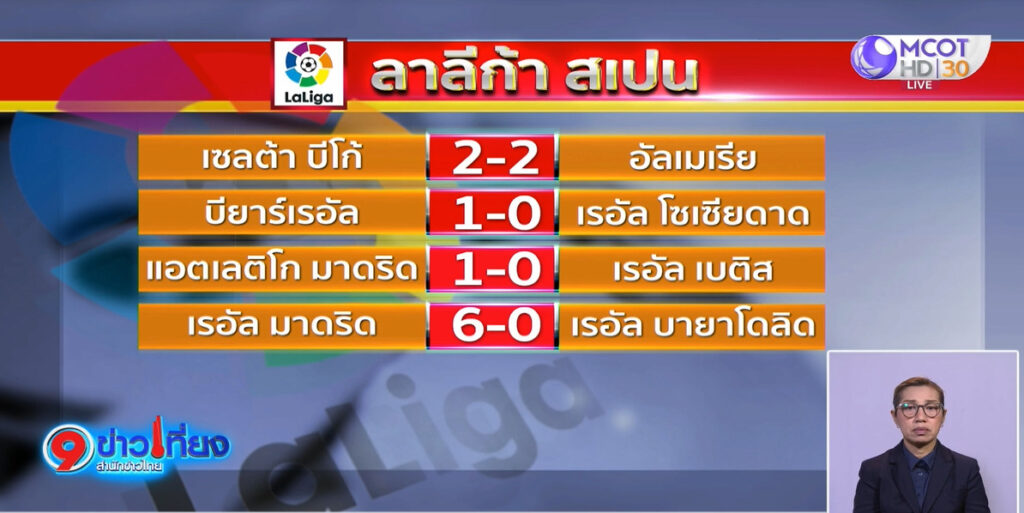 ผลคู่อื่นๆ เซลต้า บีโก้ เสมอ อัลเมเรีย 2-2, บียาร์เรอัล ชนะ เรอัล โซเซียดาด 1-0, แอตเลติโก มาดริด ชนะ เรอัล เบติส 1-0