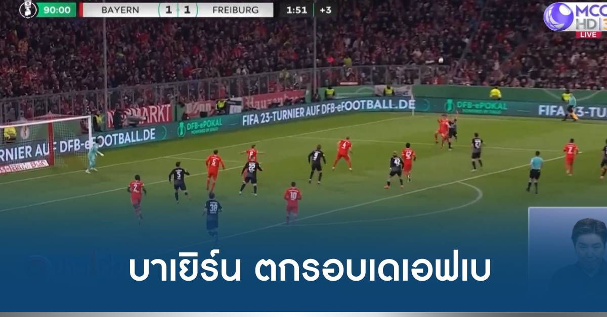 ศึกเดเอฟเบ โพคาล เยอรมนี รอบ 8 ทีมสุดท้าย “ทีมเสือใต้” บาเยิร์น มิวนิค เปิดอลิอันซ์ อารีน่า พบ ไฟร์บวร์ก นาทีที่ 19 โยชัวร์ คิมมิช เปิดเตะมุมให้ ดาโยต์ อูปาเมกาโน่ โขกเข้าไปให้เจ้าถิ่นขึ้นนำ 1-0 จากนั้นเพียง 8 นาที คิงส์ลี่ย์ โคมัน สกัดบอลไม่ขากดไปเข้าทาง นิโคลัส ฮอฟเลอร์ ซัดด้วยซ้ายเต็มข้อผ่านมือ แยน ซอมเมอร์สเข้าไปให้ทีมเยือนตีเสมอ 1-1 ช่วงทดเวลานาทีที่ 90+2 ทีมเยือนมาได้จุดโทษ จากจังหวะแฮนด์บอลของ จามาล มูเซียล่า ที่ไปกระโดดบล็อกลูกยิงของ นิโคลัส ฮอฟเลอร์ ก่อนที่ ลูคัส โฮเลอร์ จะเป็นฮีโร่ ซัดเข้าไปช่วยให้ ไฟร์บวร์ก บุกมาเฉือนเอาชนะ 2-1 เขี่ยบาเยิร์น ที่เพิ่งได้ โทมัส ทูเคิ่ลเข้ามาคุมทีมตกรอบ พร้อมผ่านเข้ารอบตัดเชือกได้สำเร็จ
