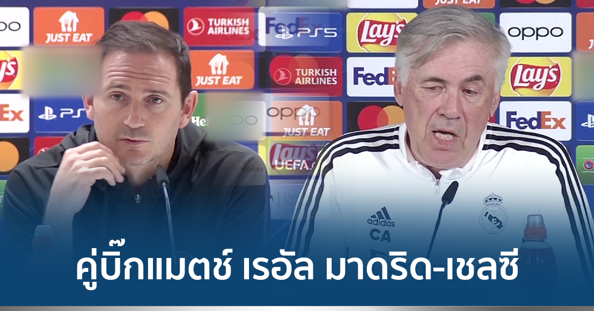 ฟุตบอลถ้วย ยูฟ่า แชมเปียนส์ลีก รอบ 8 ทีมสุดท้าย เกมแรก คืนนี้เวลา 02.00 น. คู่บิ๊กแมตช์ “สิงโตน้ำเงินคราม” เชลซี จะบุกไปเยือน “ราชันชุดขาว” เรอัล มาดริด ที่สนามซานเตียโก เบร์นาเบว แฟรงค์ แลมพาร์ด กุนซือขัดตาทัพของ เชลซี กล่าวถึงความพร้อมของทีมว่า เกมนี้จะเป็นเกมที่พิเศษและการเจอกับ เรอัล มาดริด จะต้องนำศักยภาพของทีมออกมาให้ได้อย่างเต็มที่ ส่วนความพร้อมเกมนี้จะขาด ปิแอร์-เอเมอริค โอบาเมยอง, เบอนัวต์ บาเดียชิลล์ และโนนี มาดูเอเก ที่ไม่สามารถลงเล่นรายการนี้ได้ ส่วน รีซ เจมส์, เอนโกโล กองเต, เอ็นโซ เฟร์นานเดซ พร้อมลงสนาม แต่ เมสัน เมาท์ และ ธิเอโก ซิลวา ต้องลุ้นเช็กความฟิต