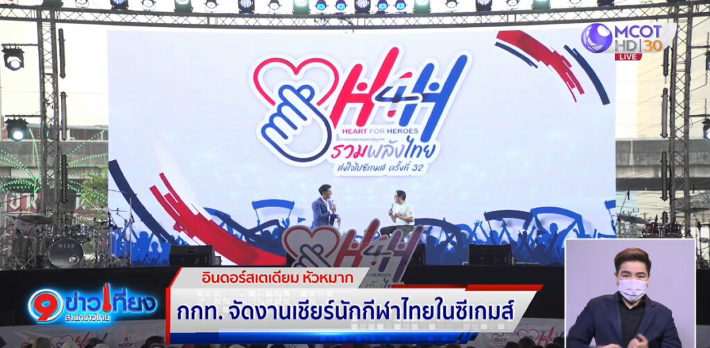 ดร.ก้องศักด ยอดมณี ผู้ว่าการการกีฬาแห่งประเทศไทย เป็นประธานในงาน Big Event “H4H รวมพลังไทย ส่งใจไปซีเกมส์ ครั้งที่ 32” ภายใต้โครงการจัดกิจกรรมสร้างกระแสการชมและเชียร์ให้กำลังใจนักกีฬาที่เข้าร่วมการแข่งขันกีฬาซีเกมส์ ครั้งที่ 32 โดยมี “ออมสิน” อรนวีย์ ศรีสหกิจ นักกีฬาเทควันโดทีมชาติไทย, วิว กุลวุฒิ วิทิตศานต์ นักกีฬาแบดมินตันทีมชาติไทย เอส ศุภ สง่าวรวงศ์ นักกีฬาว่ายน้ำทีมชาติไทย และประชาชนกว่า 700 คน ร่วมงาน ที่ลานอเนกประสงค์ และลานพลาซ่า อินดอร์สเตเดียม หัวหมาก