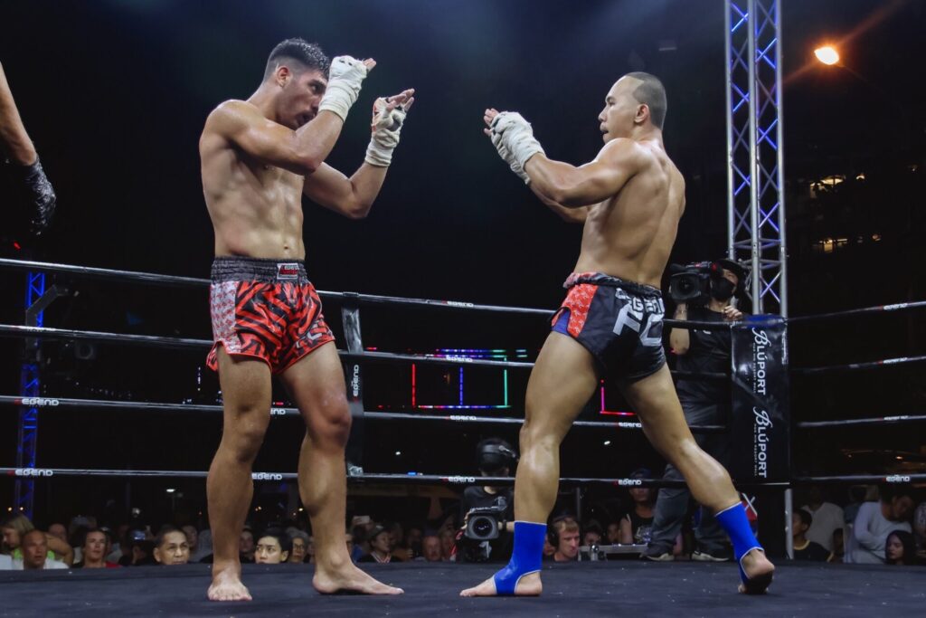 ในศึกมวยไทยคาดเชือก ไฮไลต์เป็นการดวลกันในพิกัด 65 กก.ชาย ระหว่าง ฟ้าลิขิต เดอะเลเจนด์อารีน่า นักชกวัย 28 ปีของไทย กับ วาฮิด นิกค่า นักมวยไทยชาวอิหร่าน คู่นี้สู้กันสนุกดุเดือดแบบครบ 3 ยก ก่อนสุดท้ายเป็น ฟ้าลิขิต ที่แม้มีแผลแตกที่บริเวณตา แต่ก็กัดฟันสู้ พยายามลุยออกอาวุธเข้าใส่ ซึ่งก็แม่นยำและชัดเจนกว่า ทำให้เอาชนะคะแนนไป