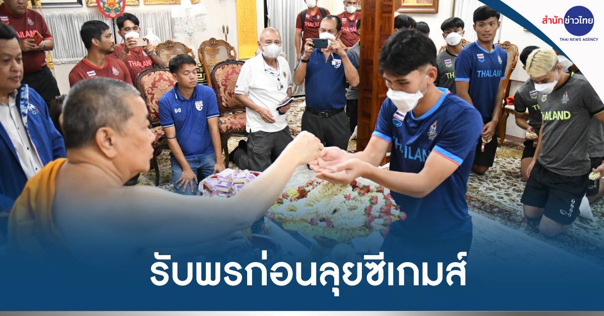 กทม. 26 เม.ย.-นักเตะทีมชาติไทย ชุดสู้ศึกซีเกมส์ เข้ารับพรจาก สมเด็จธงชัย เพื่อเป็นศิริมงคล ก่อนเดินทางไปกัมพูชา