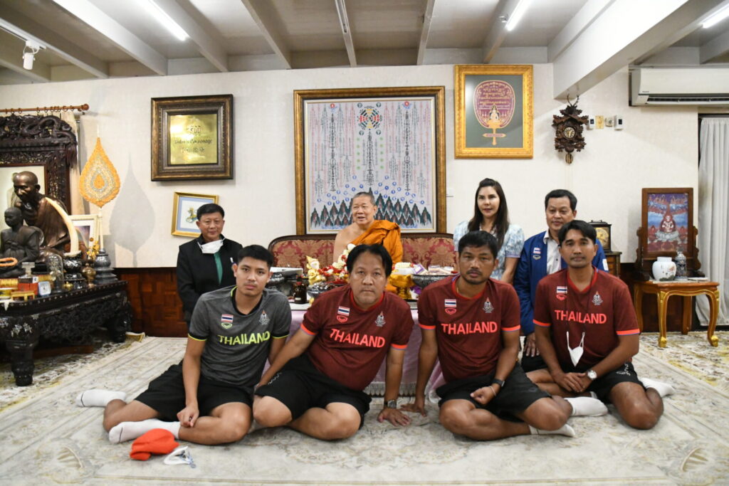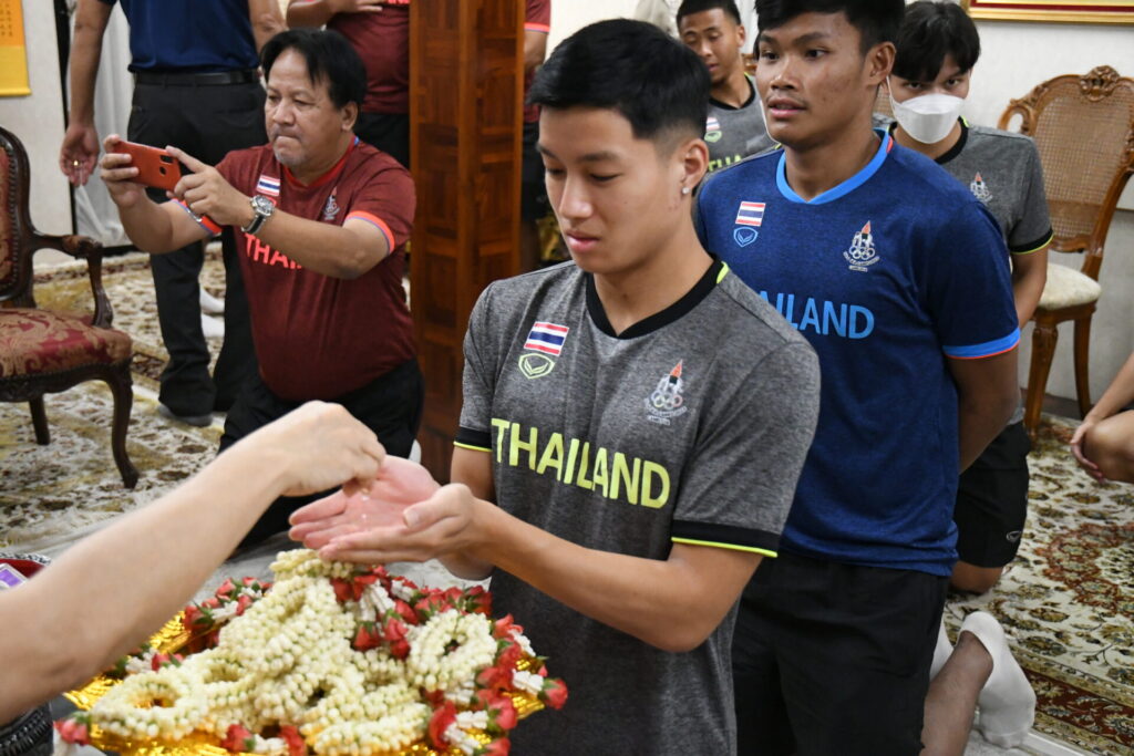 สำหรับทีมชาติไทย U22 ก่อนหน้านี้ ได้เข้าแคมป์ฝึกซ้อมที่พัฒนา สปอร์ต รีสอร์ท จังหวัดชลบุรี มาอย่างต่อเนื่อง ตลอด 1 สัปดาห์ และได้มาสักการะขอพรสมเด็จธงชัย เพื่อเป็นศิริมงคลก่อนเดินทางไปทำการแข่งขันที่ประเทศกัมพูชา
