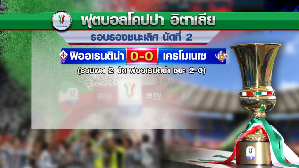 ขณะที่ ผลฟุตบอลถ้วย โคปปา อิตาเลีย รอบรองชนะเลิศ นัดที่ 2 ฟิออเรนตินา เสมอ เครโมเนเซ 0-0 รวมผล 2 นัด ฟิออเรนตินา ชนะ 2-0 ผ่านเข้ารอบชิงชนะเลิศไปพบกับอินเตอร์มิลาน ในวันที่ 24 พฤษภาคมนี้ .-สำนักข่าวไทย