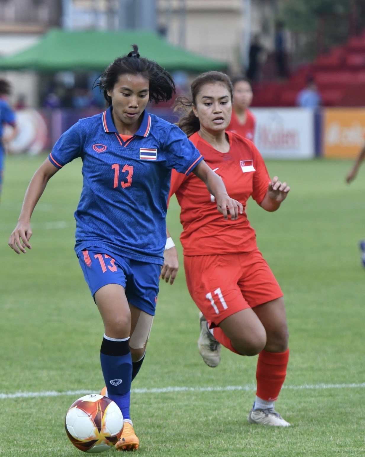 กัมพูชา 3 พ.ค. – ฟุตบอลหญิงทีมชาติไทย เอาชนะ สิงคโปร์ 4-0 ประเดิมสนามซีเกมส์ รอบแบ่งกลุ่ม นัดแรก กลุ่มบี