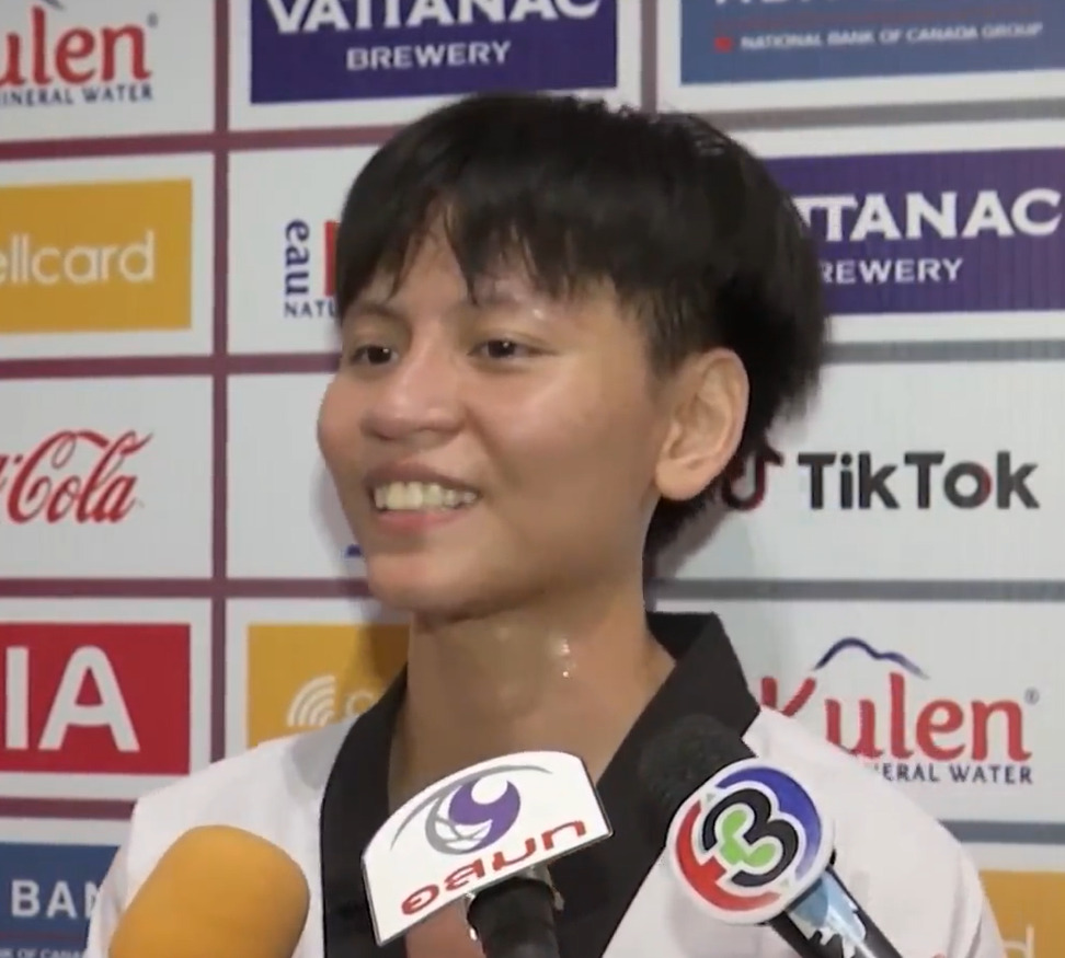 หลังคว้าแชมป์ เหมี่ยว บอกว่าก่อนแข่งกดดัน เนื่องจากแข่งเป็นคนที่ 3 และสองรุ่นแรกของเรา ทั้งจูเนียร์ และ โช แพ้นักกีฬาจากฟิลิปปินส์