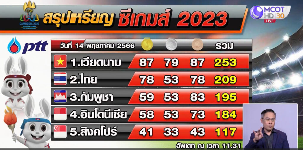 กัมพูชา 14 พ.ค.-ฟุตบอลชาย รอบรองชนะเลิศ ที่โอลิมปิก สเตเดียม อนันต์ ยิงประตูสวยปิดท้ายให้ทีมชาติไทย ชนะ เมียนมา 3-0 ผ่านเข้ารอบชิงชนะเลิศ พบ อินโดนีเซีย หลังจบเกม “โค้ชหระ” พอใจภาพรวมของทีมเก็บชัยชนะได้