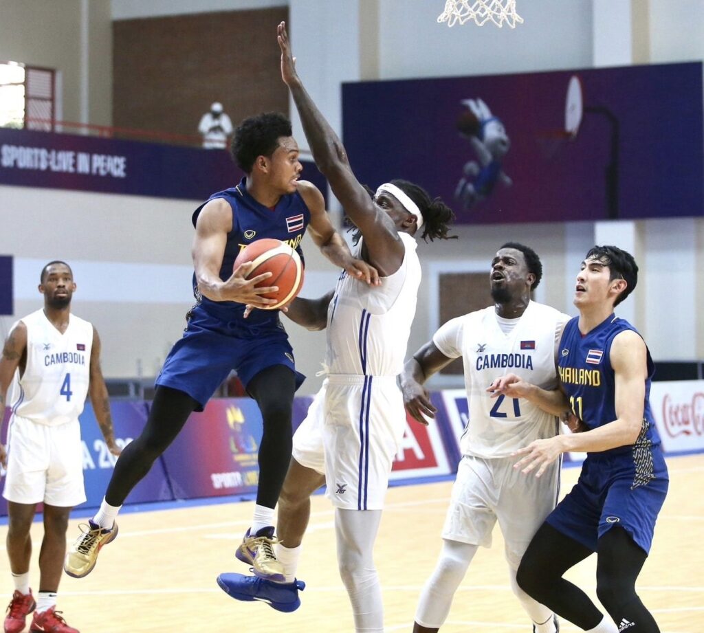 บาสเกตบอลประเภททีมชาย 5×5 รอบรองชนะเลิศ ทีมชาติไทย รองแชมป์กลุ่มบี ชุดสีน้ำเงิน ที่นำทัพโดย แอนโทนีโอ ไพร้ซ์ สุนทรโชติ, ไทเลอร์ แลมป์ และ มาติน พงศ์นิวัติ เบอลิก พบกับ เจ้าภาพ กัมพูชา แชมป์กลุ่มเอ ที่ส่งนักกีฬาโอนสัญชาติจากสหรัฐอเมริกาทั้ง ดาร์ริน ดอร์ซีย์, แบรนดอน ปีเตอร์สัน, ไซอีด พริดเจตต์, ออสการ์ โลเปส, ดเวย์น มอร์แกน นำทัพ ซึ่งช่วงควอเตอร์แรกทีมไทย นำ 14-4 แต่สุดท้ายกลับมาโดนเจ้าภาพแซงเอาชนะไปได้ 76-66 คะแนน ทำให้ทีมไทย ไปชิงอันดับ 3 กับ อินโดนีเซีย ที่พ่ายฟิลิปปินส์มาในรอบรองชนะเลิศ โดยเป็นการพบกันอีกครั้ง หลังจากในรอบแรก อินโดนีเซีย เอาชนะไทยมาได้ ในวันนี้เวลา 13.00 น. ส่วนคู่ชิงชนะเลิศ กัมพูชา พบ ฟิลิปปินส์