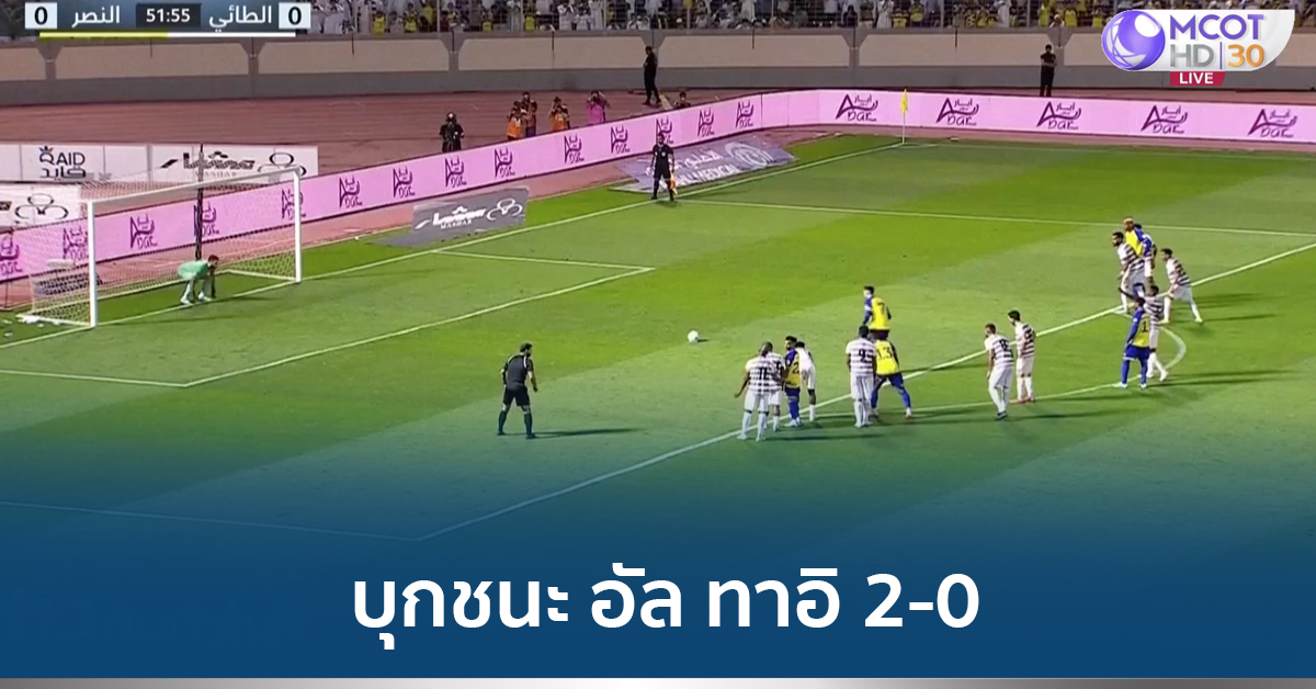เกมนี้ อัล นาสเซอร์ นำก่อนจากจุดโทษของ คริสเตียโน โรนัลโด ครึ่งหลังนาทีที่ 52 จากนั้น อันแดร์สัน ทาลิสกา ฉกบอลไปบวกประตูที่ 2 นาทีที่ 80 จบเกม อัล นาสเซอร์ บุกมาชนะ อัล ทาอิ 2-0 เตะ 27 นัดเท่ากับ อัล อิตติฮัด จ่าฝูง แต่ยังมีคะแนนตามหลังอยู่ 3 คะแนน.-สำนักข่าวไทย