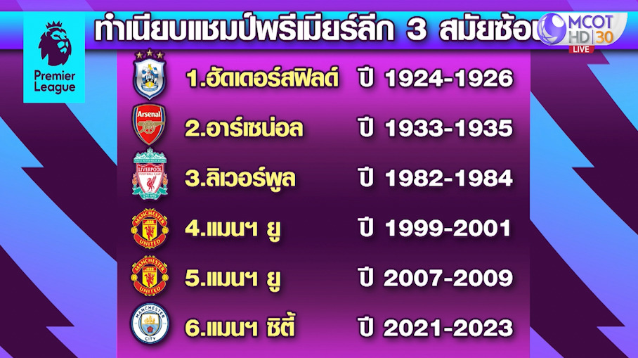 “เรือใบสีฟ้า” ยังเป็นทีมที่ 5 ที่ได้แชมป์ลีกสูงสุดของอังกฤษ 3 สมัยซ้อน ต่อจากฮัดเดอร์สฟิลด์ ในปี 1924-1926, อาร์เซนอล ในปี 1933-1935, ลิเวอร์พูล ปี 1982-1984,แมนเชสเตอร์ ยูไนเต็ด ปี 1999-2001 และปี 2007-2009 และล่าสุดแมนฯ ซิตี้ ปี 2021-2023 อย่างไรก็ตาม แมนฯ ยูไนเต็ด ยังเป็นเพียงทีมเดียวที่ได้แชมป์ลีกสูงสุดของอังกฤษ 3 สมัยติดต่อกัน ถึง 2 ครั้ง ในยุคของเซอร์ อเล็กซ์ เฟอร์กูสัน
