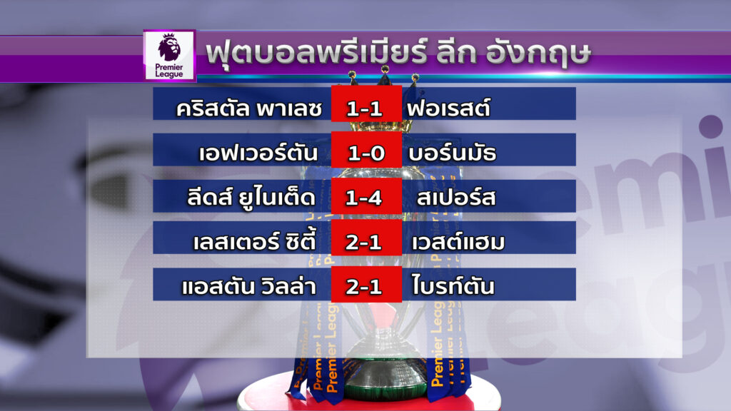 อังกฤษ 29 พ.ค.-แมนฯ ซิตี้ พลิกล็อกพ่าย เบรนท์ฟอร์ด 0-1 ส่วน เลสเตอร์ ซิตี้ กับ ลีดส์ ยูไนเต็ด เป็นสองทีมที่ตกชั้นตาม เซาแฮมป์ตัน ไปเล่นในเดอะ แชมเปี้ยนชิพ ฤดูกาลหน้า