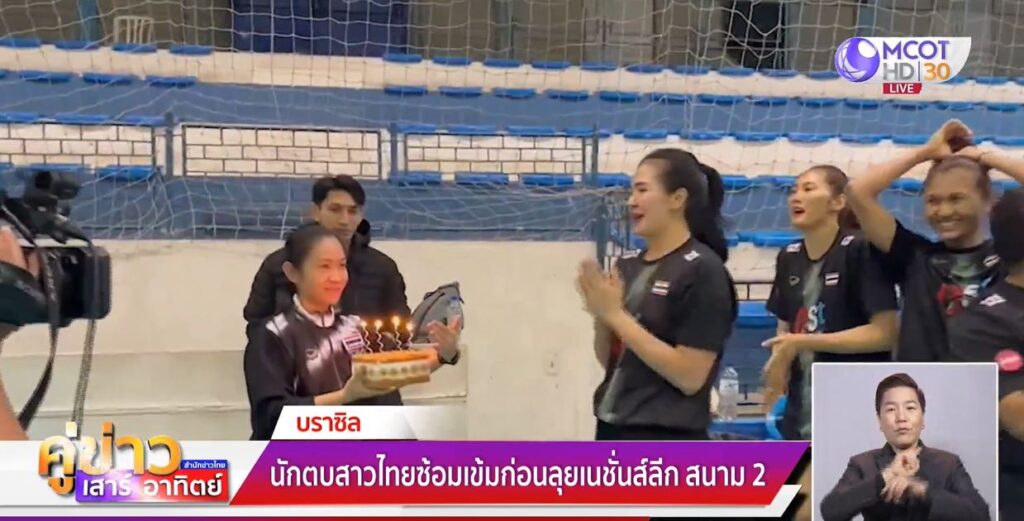 บราซิล 11 มิ.ย. – ทีมนักตบลูกยางสาวทีมชาติไทย ลงฝึกซ้อมต่อเนื่องเพื่อเตรียมลุยศึกเนชันส์ลีก สนาม 2 ที่บราซิล โดยมีเซอร์ไพรส์ ฉลองวันคล้ายวันเกิด “ออมสิน” ศศิภาพร จันทวิสูตร ด้วย