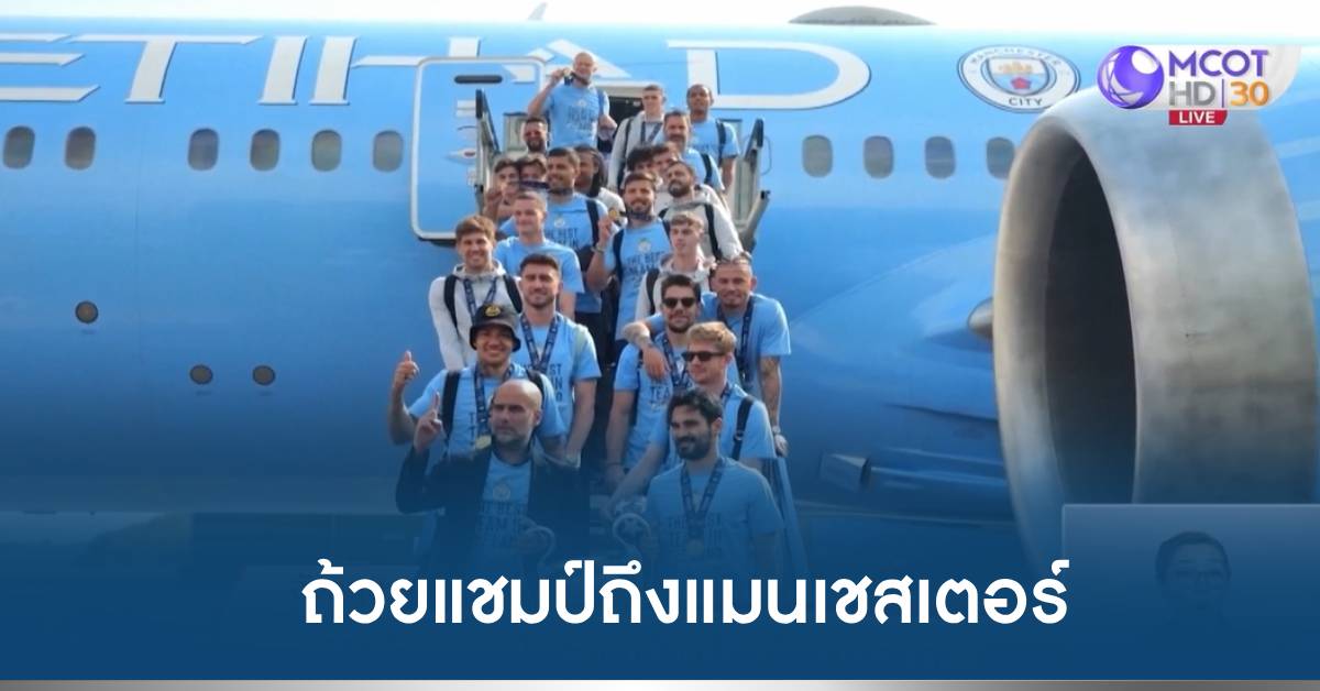 อังกฤษ 12 มิ.ย.-แมนเชสเตอร์ ซิตี้ เดินทางถึงเมืองแมนเชสเตอร์ เตรียมฉลองแชมป์ ยูฟ่า แชมเปียนส์ลีกร่วมกับแฟนบอล ด้วยขบวนพาเหรดรถบัสเปิดประทุนแห่รอบเมือง