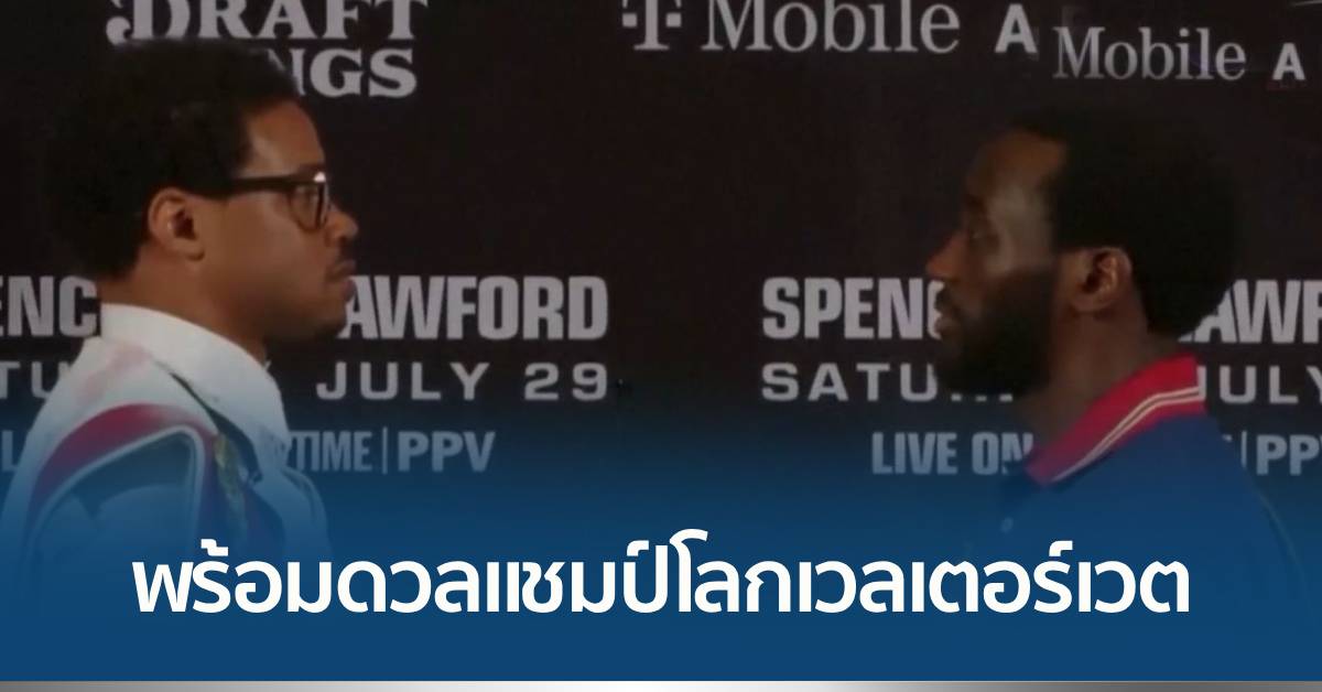เออร์โรล สเปนซ์ จูเนียร์ และ เทเรนซ์ ครอว์ฟอร์ด 2 ยอดนักมวยชาวอเมริกัน พบกันครั้งแรกในงานแถลงข่าวก่อนดวลหมัดเพื่อชิงแชมป์โลกรุ่นเวลเตอร์เวต ปัจจุบันทั้งคู่ได้ชื่อว่าเป็นแชมป์โลกไร้พ่าย สเปนซ์ วัย 32 ปี ขึ้นชก 28 ไฟต์ ชนะรวด เป็นการชนะน็อก 22 ครั้ง ส่วน ครอว์ฟอร์ด วัย 34 ปี ขึ้นชก 38 ไฟต์ชนะรวด และชนะน็อก 29 ครั้ง
