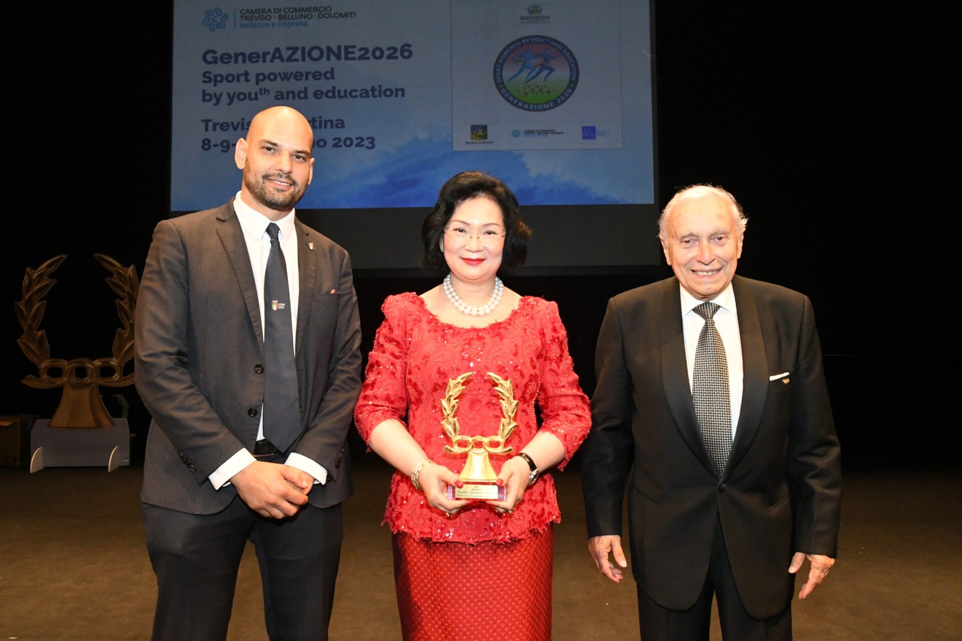 คุณหญิงปัทมา ลีสวัสดิ์ตระกูล กรรมการคณะกรรมการโอลิมปิกสากล (ไอโอซี) ประธานคณะกรรมาธิการด้านวัฒนธรรมและมรดกของไอโอซี, กรรมการบริหารสภาสมาคมคณะกรรมการโอลิมปิกแห่งชาติ (แอนน็อก), กรรมการบริหารสภาโอลิมปิกแห่งเอเซีย(โอซีเอ) ประธานคณะกรรมการด้านวัฒนธรรม โอซีเอ, รองประธานคนที่ 1 สหพันธ์แบดมินตันโลก, รองประธานคณะกรรมการโอลิมปิกไทยแห่งประเทศไทย ในพระบรมราชูปถัมภ์ และ นายกสมาคมกีฬาแบดมินตันแห่งประเทศไทย ในพระบรมราชูปถัมภ์ เข้ารับรางวัล “Guirlande d’ Honneur” รางวัลอันทรงเกียรติสูงสุดของสหพันธ์ภาพยนตร์และโทรทัศน์ด้านกีฬานานาชาติ Fédération Internationale Cinéma Télévision Sportifs (FICTS) ที่ Theatre Mario Del Monaco จาก ศ.ดร.ฟรังโก แอสกานี (Prof.Dr.Franco Ascani ) ที่เมืองเตรวิโซ่ ประเทศอิตาลี ในการประชุมใหญ่สามัญประจำปีของสหพันธ์ฯ