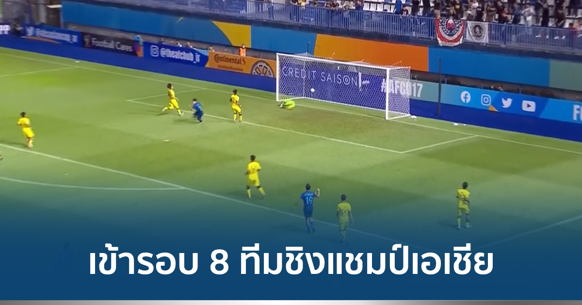ปทุมธานี สเตเดียม 19 มิ.ย.- ทีมชาติไทยชุด 17 ปี ผ่านเข้ารอบ 8 ทีมสุดท้ายศึกชิงแชมป์เอเชีย แน่นอนแล้ว หลังถล่มชนะมาเลเซีย 3-0