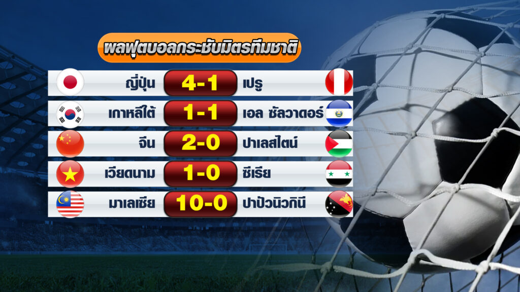 ผลฟุตบอลกระชับมิตรทีมชาติ