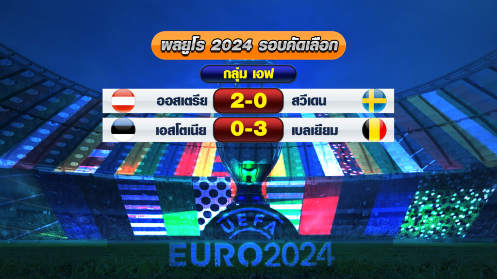 กลุ่ม เอฟ ออสเตรีย ชนะ สวีเดน 2-0 เอสโตเนีย แพ้ เบลเยียม 0-3 นัดนี้ โรเมลู ลูกากู ยิง 2 ประตู นาทีที่ 37 และ 40 กลุ่มนี้ ออสเตรีย นำจ่าฝูงมี 10 คะแนน โดยมีเบลเยียม รั้งอันดับ 2 มี 7 คะแนน