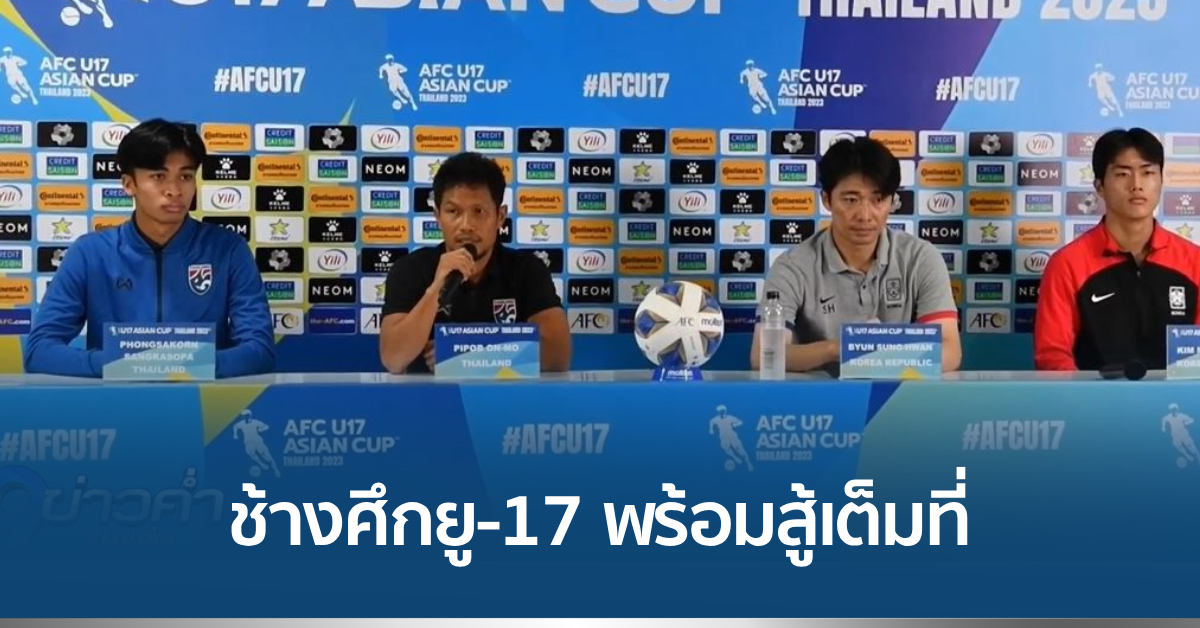 สมาพันธ์ฟุตบอลแห่งเอเชียจัดแถลงข่าวก่อนการแข่งขันฟุตบอลชิงแชมป์เอเชีย รุ่นอายุไม่เกิน 17 ปี รอบ 8 ทีมสุดท้าย คู่ระหว่างทีมชาติไทย พบเกาหลีใต้ ที่สนามปทุมธานี สเตเดียม โดยทีมไทยมี พิภพ อ่อนโม้ หัวหน้าผู้ฝึกสอนทีมชาติไทย พร้อมด้วย พงศกร สังขโสภา ร่วมแถลง