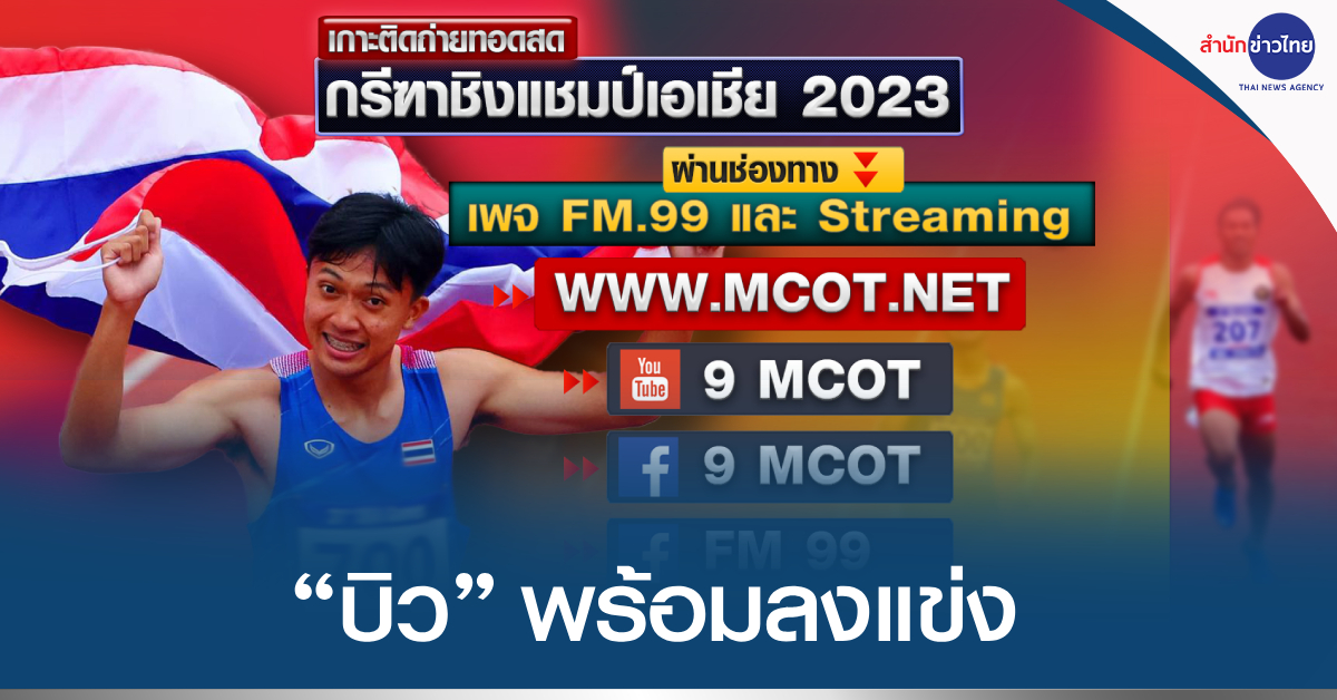 กรุงเทพฯ 6 ก.ค. – “บิว” ภูริพล บุญสอน ลมกรดหนุ่มทีมชาติไทย พร้อมลงแข่งขันวิ่งผลัด 4 คูณ 100 เมตรชาย ในศึกกรีฑาชิงแชมป์เอเชีย 2023 ระหว่างวันที่ 12-16 ก.ค.นี้ ที่สนามศุภชลาศัย ช่อง 9 MCOT HD กด 30 พร้อมถ่ายทอดสด
