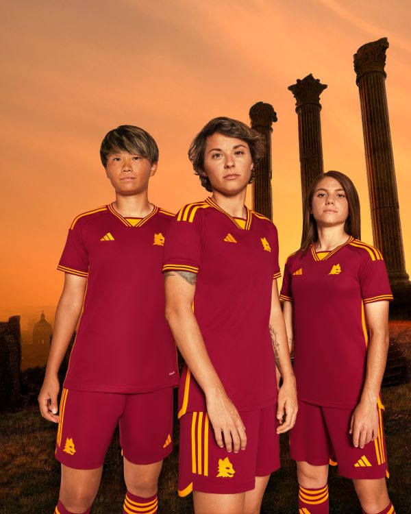 หลังจากผ่านไป 30 ปี สัญลักษณ์สามแถบของอาดิดาสก็หวนคืนสู่เสื้อแข่งขันสโมสรเอเอส โรม่าอีกครั้ง ในดีไซน์ที่ได้รับแรงบันดาลใจจากยุค 90 โดยเฉพาะช่วงฤดูกาล 1992/93 โดยเสื้อเหย้าในฤดูกาลล่าสุดนี้ยังคงความมินิมอลและความคลาสสิกเหนือกาลเวลาในโทนสีอันเป็นเอกลักษณ์ของสโมสร ด้วยตัวเสื้อสีแดงเสริมด้วยดีเทลสีเหลือง พร้อมการกลับมาของสัญลักษณ์ “ลูกหมาป่า” บนอกซ้าย ที่ถูกออกแบบขึ้นในปี 1978 โดย ปิเอโร กราตัน (Piero Gratton) และมีโลโก้อาดิดาสประดับอยู่ฝั่งที่ตรงข้าม พร้อมดีไซน์คอวีสีเหลืองบนพื้นแดงเสริมด้วยแถบสามแถบบริเวณไหล่และชายเสื้อแบบหน้าสั้นหลังยาว ปิดท้ายด้วยดีเทลบริเวณหลังคอซึ่งได้รับแรงบันดาลใจจากแฟนสโมสร เพื่อเฉลิมฉลองหนึ่งในการส่งเสียงเชียร์ที่โดดเด่นที่สุดของแฟนเอเอส โรม่า กับประโยค “Daje Roma Daje” ที่มีความหมายว่า ลุยเลยโรม่า!