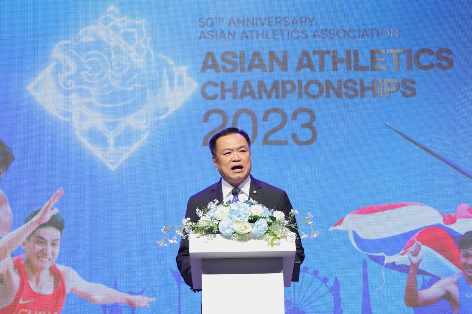 วันนี้ (11 ก.ค.66) ณ สามย่าน มิตรทาวน์ ฮอลล์ เขตปทุมวัน มีพิธีเปิดการแข่งขันกรีฑาชิงชนะเลิศแห่งเอเชีย ครั้งที่ 25 (25th Asian Athletics Championships 2023) โดยมีนายอนุทิน ชาญวีรกูล รองนายกรัฐมนตรีและรัฐมนตรีว่าการกระทรวงสาธารณสุข เป็นประธาน พร้อมด้วย ลอร์ด เซบาสเตียน โค ประธานสมาคมกรีฑาโลก นายดาลาล อัล ฮาหมัด ประธานสมาคมกีฬากรีฑาแห่งเอเชีย และ พล.ต.อ.สันต์ ศรุตานนท์ นายกสมาคมกีฬากรีฑาแห่งประเทศไทย ในพระบรมราชูปถัมภ์ พร้อมด้วยนักกีฬา สตาฟฟ์โค้ช และแขกผู้มีเกียรติทั้ง 42 ประเทศ ร่วมงานอย่างคับคั่ง