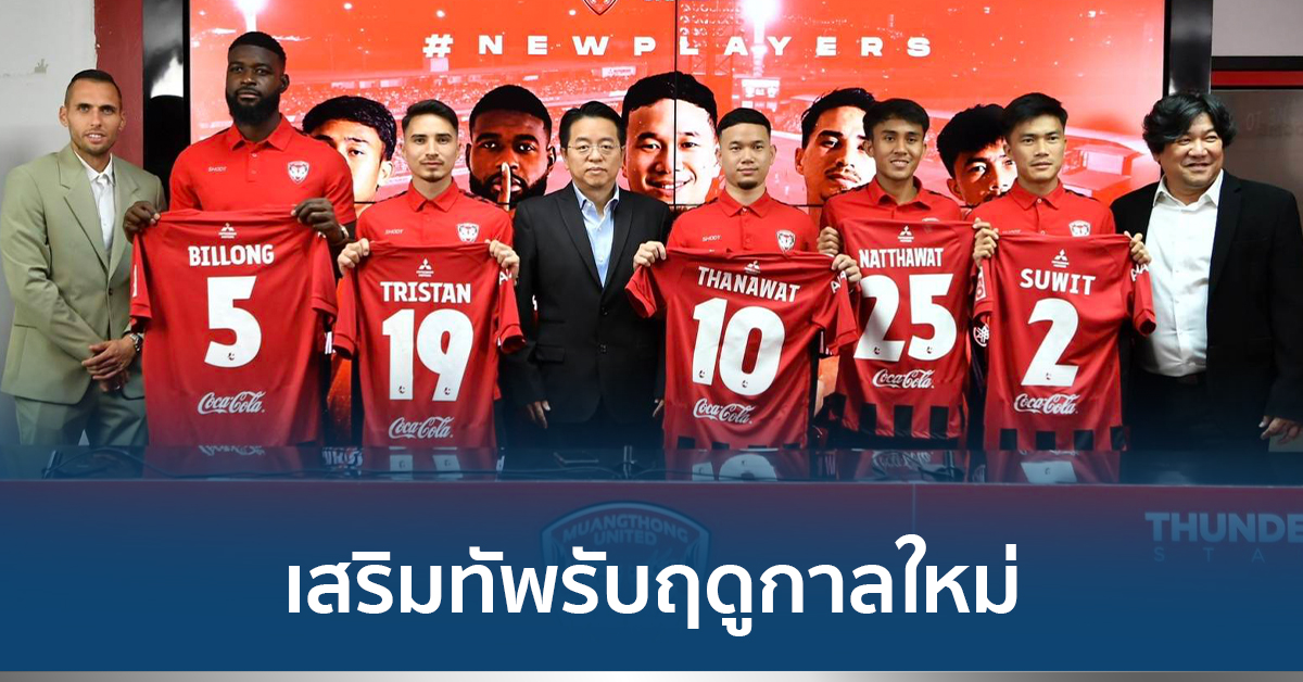 กทม. 17 ก.ค.- “กิเลนผยอง” เมืองทอง ยูไนเต็ด เสริมทัพรับฤดูกาลใหม่ 2023/24 เปิดตัว 5 ผู้เล่นอย่างเป็นทางการ ด้านบอร์ดบริหารมั่นใจจะช่วยยกระดับทีมไปอีกขั้น เพื่อลุ้นไล่ล่าความสำเร็จกลับมาอีกครั้ง