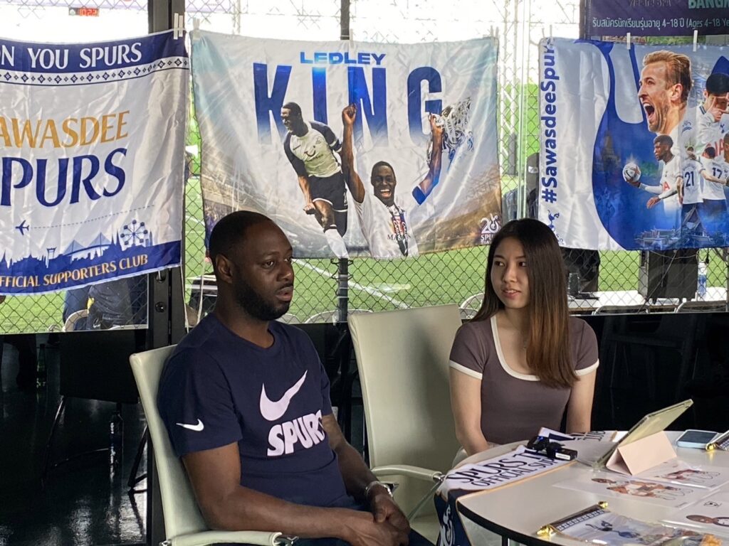 ซึ่งหนึ่งในทีมงาน “ไก่เดือยทอง” ที่เดินทางมาด้วยนั้นคือ เลดลี่ย์ คิง อดีตกองหลังกัปตันทีม ที่ปัจจุบันรับบทบาททูตลูกหนังประจำสโมสร โดย คิง ได้ให้เกียรติสัมภาษณ์กับสื่อมวลชนอย่างเป็นกันเอง
