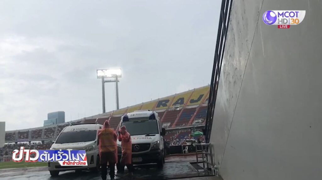 ราชมังคลากีฬาสถาน 23 ก.ค. – ฝนถล่มราชมังคลากีฬาสถาน ก่อนเกมฟุตบอลนัดอุ่นเครื่องปรีซีซั่น สเปอร์ส พบ เลสเตอร์ ซิตี้ ต้องเลื่อนเกมออกไปราว 30-60 นาที จากกำหนดเดิมแข่งขันเวลา 17.00 น.